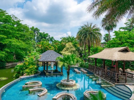 度假村的整体风格呈现浓郁的东南亚热带风情,温泉资源得天独厚、自然环境优美、休闲设施完善,自成一片远离城市喧嚣的“世外桃源”。度假村以“温泉”为主题,结合休闲、养生、健康、商务、社交等综合功能,总占地面积14万平方米,目前已建成日月谷温泉公园及日月谷温泉酒店等项目。自然健康的旅游产品、精致质感的休闲环境、专业热诚的服务,引领您体验“乐活LOHAS”时尚休闲生活。